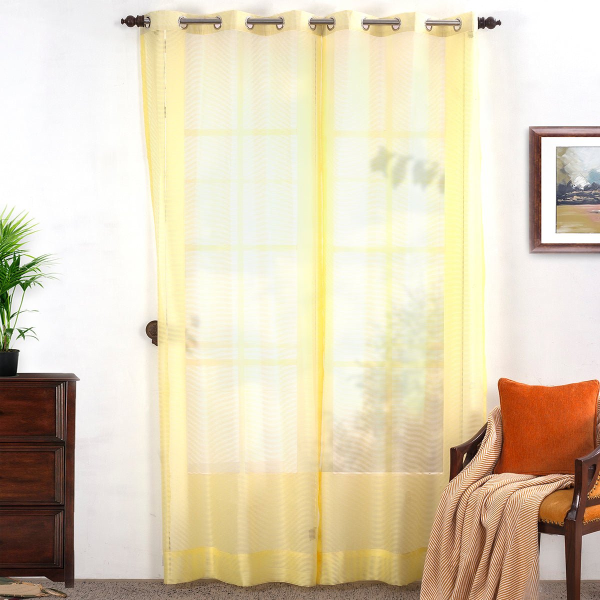 They can enhance a room’s ambience through the softening of incoming light beautifully frames your windows/doors with a soft and hazy vision Softly filtering out sunlight and let the breeze flow through your windows semi sheers will go with any solid or printed curtains you might be using which makes them easy to adopt Due to their light weight but tough fabric weaving, these are easy to handle and maintain