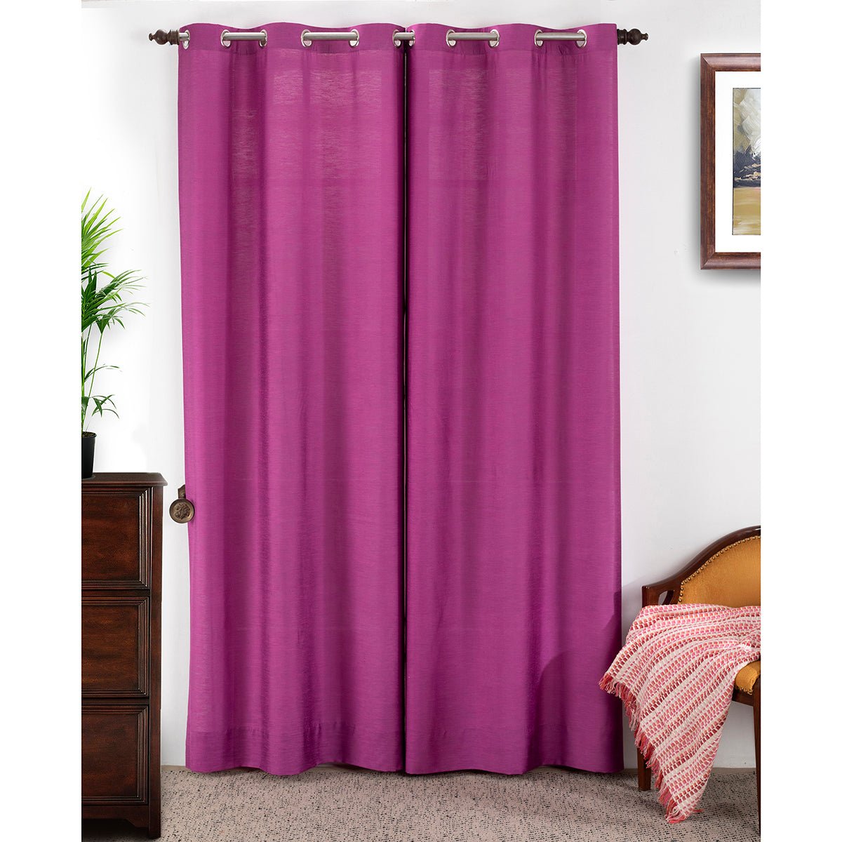 Curtain add charm and romance to a small room and enhance its elegance These curtains are durable and have strength The right curtains can make a world of difference in the comfort of your living room and the quality of your sleep Grommets along the top allow for easy installation To give the immaculate finish, all stitching and finishing procedures are done in house