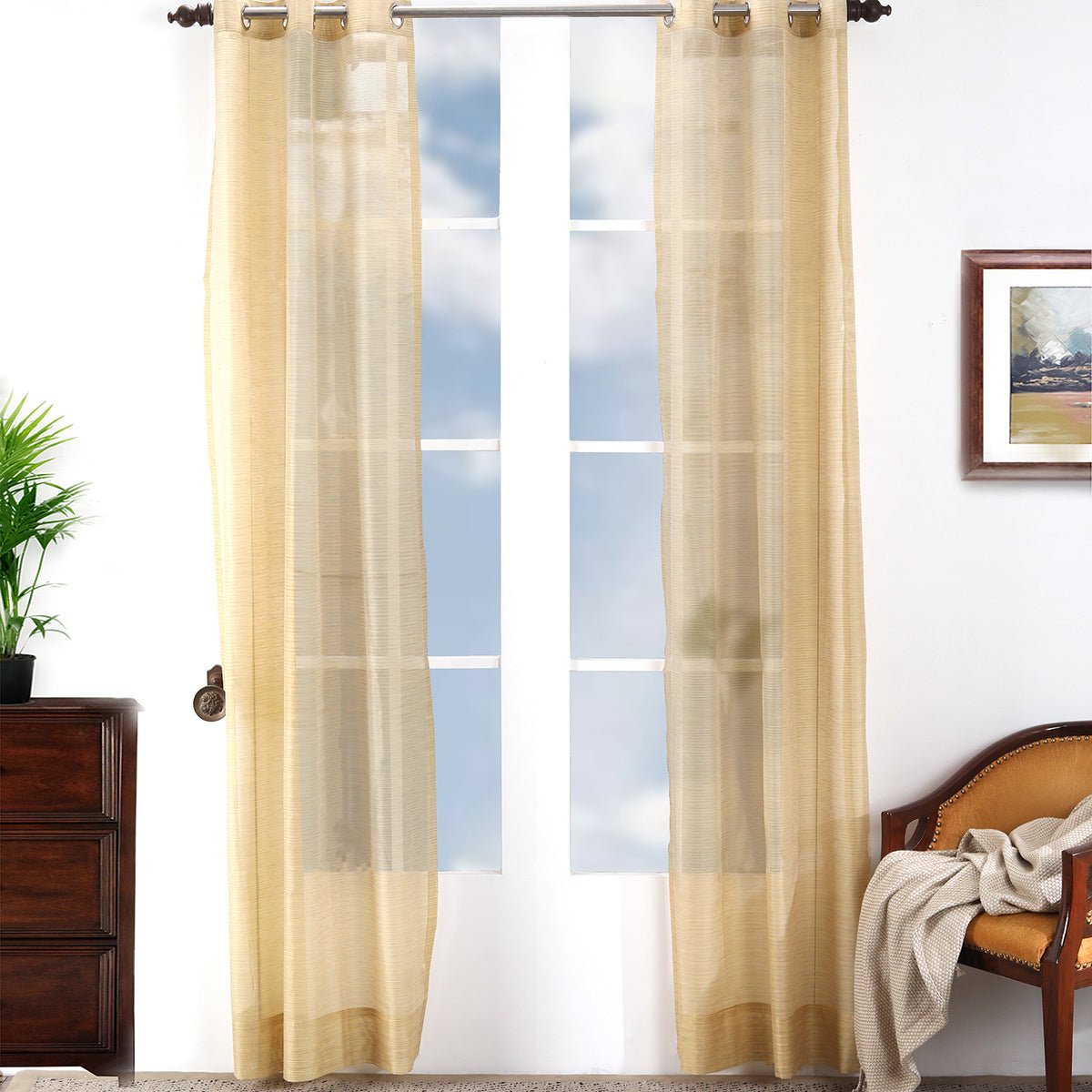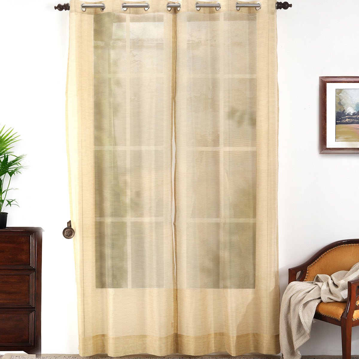 Curtain add charm and romance to a small room and enhance its elegance These curtains are durable and have strength The right curtains can make a world of difference in the comfort of your living room and the quality of your sleep Grommets along the top allow for easy installation To give the immaculate finish, all stitching and finishing procedures are done in house