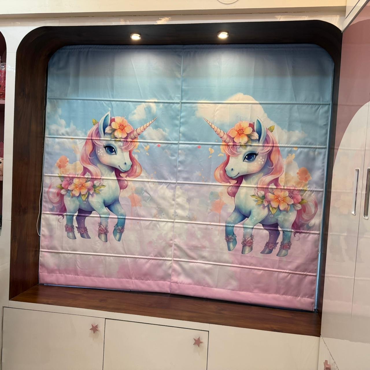 Bright and playful Roman blinds made with safe materials. Perfect for children’s spaces, offering both d?cor and privacy.