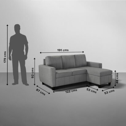 Sofa – 4 Seater Interchangeable L Shape Sofa Set (Fabric, Stone Grey)